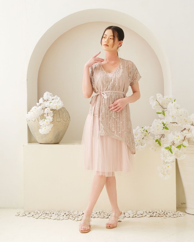 Kimono top style outer with tulle skirt. Available for custom size, request other color / fabric, custom length, sleeves custom, or any other request.